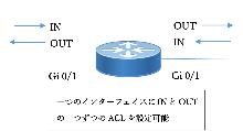 ACLはインターフェイスひとつにつき、インバウンドとアウトバウンドの合計2つのACLを設定することができる。ルータに2つのインターフェイスがある場合、合計4つのACLを設定することができる。